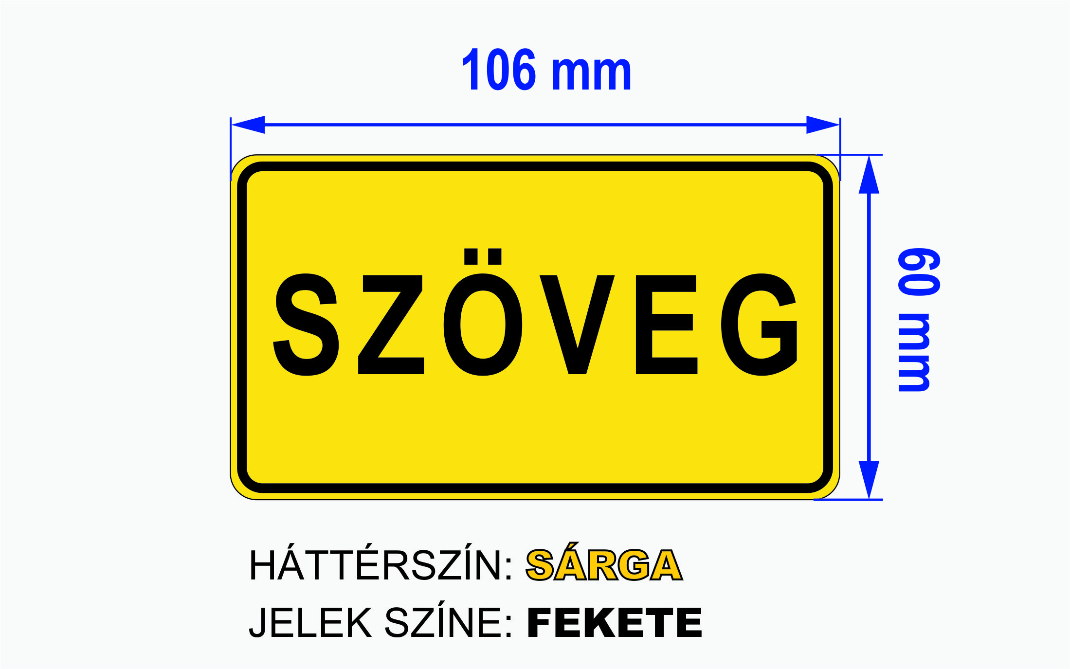 - 400 x 150 mm – sárga háttér, fekete betűk